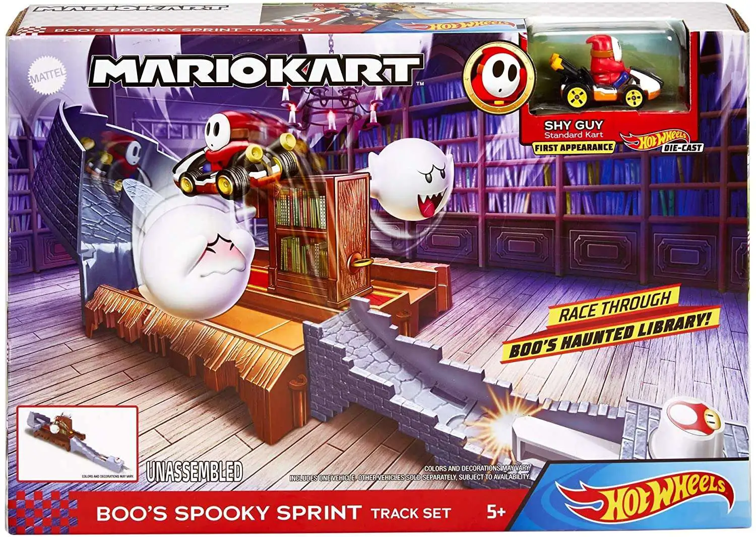 Hot Wheels brings the fast-paced action of the Mario Kart world to life with three track sets inspired by iconic courses from the popular video game. Each set includes a replica die-cast Mario Kart vehicle that kids launch to overcome obstacles and challengesjust like in the game, but this time on Hot Wheels track! Staying on the track is key to being the fastest racer on the course! “Level up” and add more challenges by connecting each of these track sets to the full Mario Kart Circuit Track Set (sold separately). Great stunting and racing thrills for younger kids who love Mario Kart! Each sold separately for ages 3 years and older.