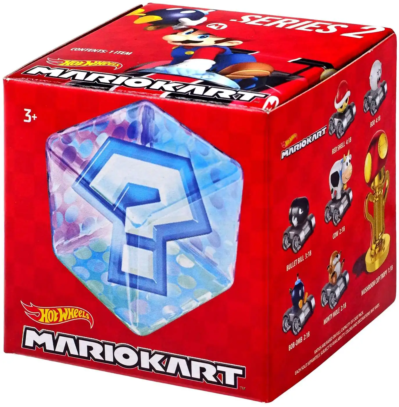 Mario Kart Item Box vehicles that perform on Hot Wheels track! These 1:64 scale die-cast vehicles are inspired by iconic items and elements from the popular video game franchise. When used in the game, items give players a competitive advantage as they battle with other racers to take the lead. Now kids can play with these iconic items on WHEELS! With lots of design variety and varying levels of rarity, the Item Box die-cast line is prefect for collector’s and fans alike. Each die-cast vehicle comes packaged in an Item Box-themed blind box, so each unboxing remains a surprise! Compatible with Hot Wheels track and other Mario Kart sets (sold separately).