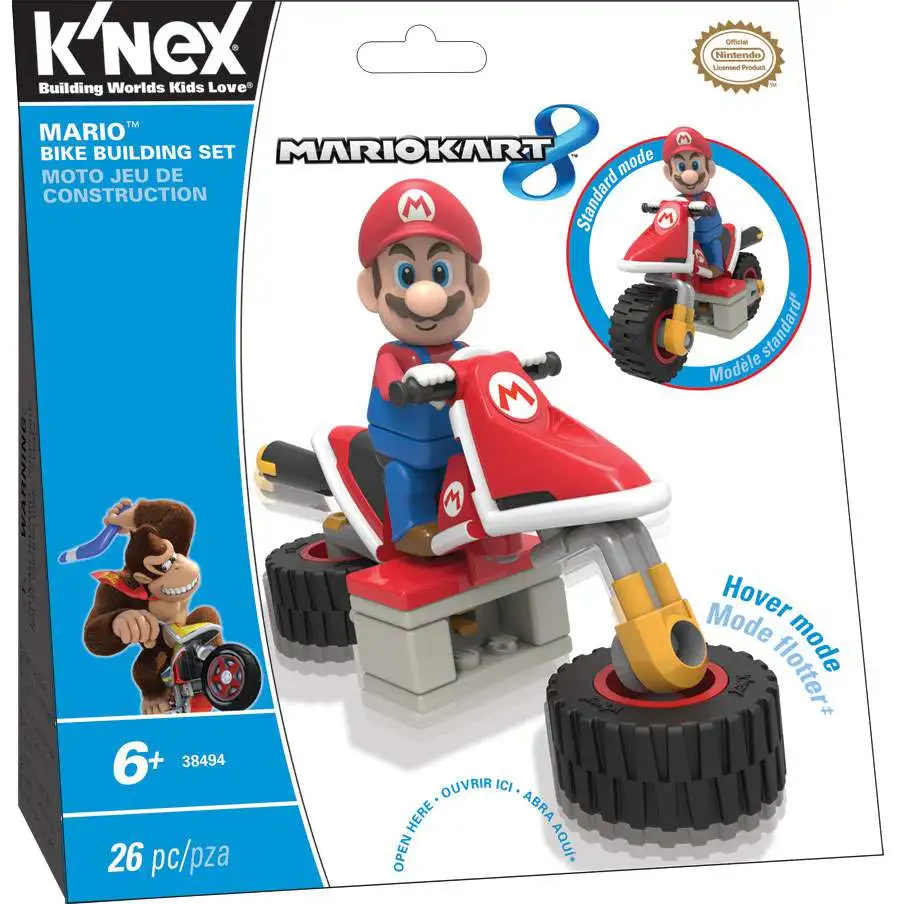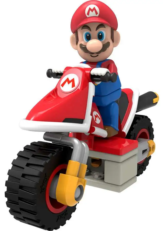 Build Mario and his Standard Bike from Mario Kart 8! Includes a buildable Mario figure and parts to build his Standard Bike. You can even transform the bike into hover mode – just like the game! Use the package as a ramp for added fun when you’re done building.