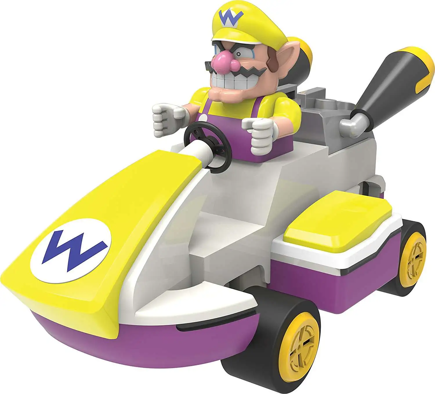 Build Wario in his Kart from Mario Kart! includes a buildable Wario figure and parts to build his Kart. Wario’s Kart even transforms into hover mode – just like the game! use the package as a ramp for added fun when you’re done building. For ages 6+.