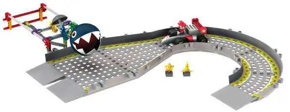 Bring Mario Kart Wii to life! Build Mario in his Sprinter Kart and race past the Chain Chomp from the Mario Circuit Track. The set includes the parts to build Mario, a Sprinter Kart with a super-fast battery-powered motor, a Chain Chomp obstacle and 2 collectible items from the game: a Star and a Banana Peel! Also includes 6 pieces of buildable, interconnectable track – combine this set with other sets from the Mario Kart Wii Series to build even bigger tracks! Ages 6+.