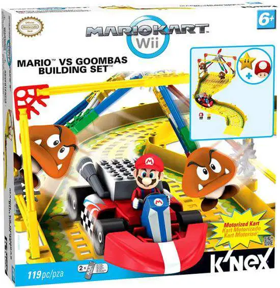 Bring Mario Kart Wii to life! Build Mario in his Standard Kart and race past the Goombas from the Mario Circuit Track. The set includes the parts to build Mario, a Standard Kart with a super-fast battery-powered motor, a Goomba obstacle and 2 collectible items from the game: a Mushroom and a Star! Also includes 6 pieces of buildable, interconnectable track – combine this set with other sets from the Mario Kart Wii Series to build even bigger tracks! Ages 6+.