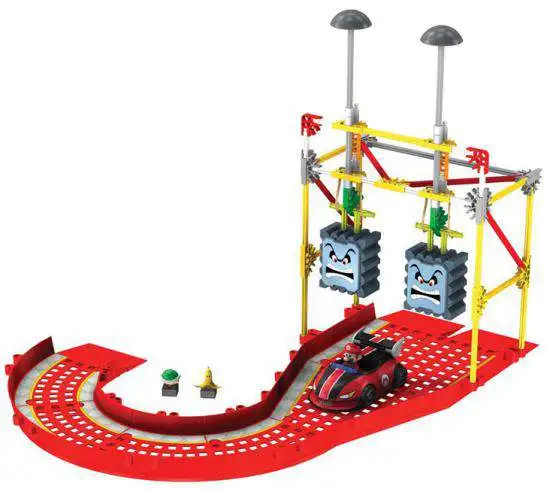Bring Mario Kart Wii to life! Build Mario in his Wild Wing Kart and race past the Thwomps from the Bowser’s Castle Track. The set includes the parts to build Mario, a Wild Wing Kart with a super-fast battery-powered motor, a Thwomp obstacle and 2 collectible items from the game: a Green Turtle Shell and a Banana Peel! Also includes 6 pieces of buildable, interconnectable track – combine this set with other sets from the Mario Kart Wii Series to build even bigger tracks! Ages 6+.