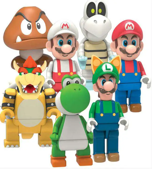 Build your favorite Super Mario characters! Each set includes 1 buildable figure – Mario, Fire Mario, Bowser, Yoshi, Dry Bones, Stackable Goomba, and Fox Luigi! Which one will you get? Collect all 7!
