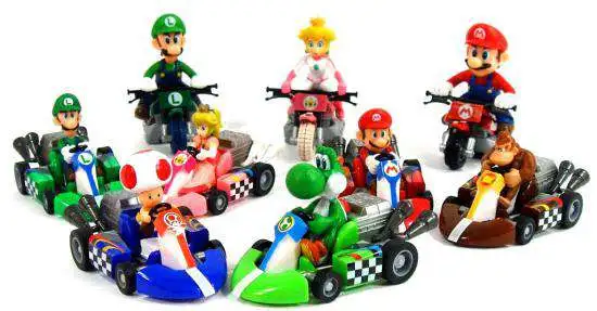 Mario Pull Back Kart Racers. With 9 racers in total to collect. Collect them all and a have a great race!
