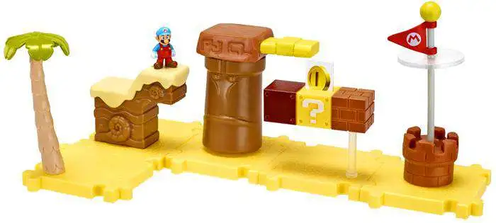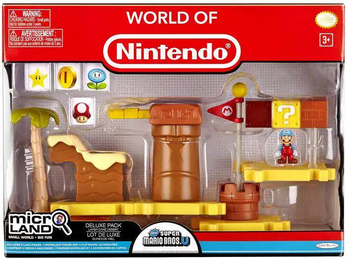 For the first time ever, build out the World of Nintendo in micro size! Each pack includes 5 2″x2″ connectible tile pieces that feature accessories and interactive pieces from the Mario Bros U game. Choose between Acorn Plains and Layer Cake Desert. Includes one 1″ micro figure
